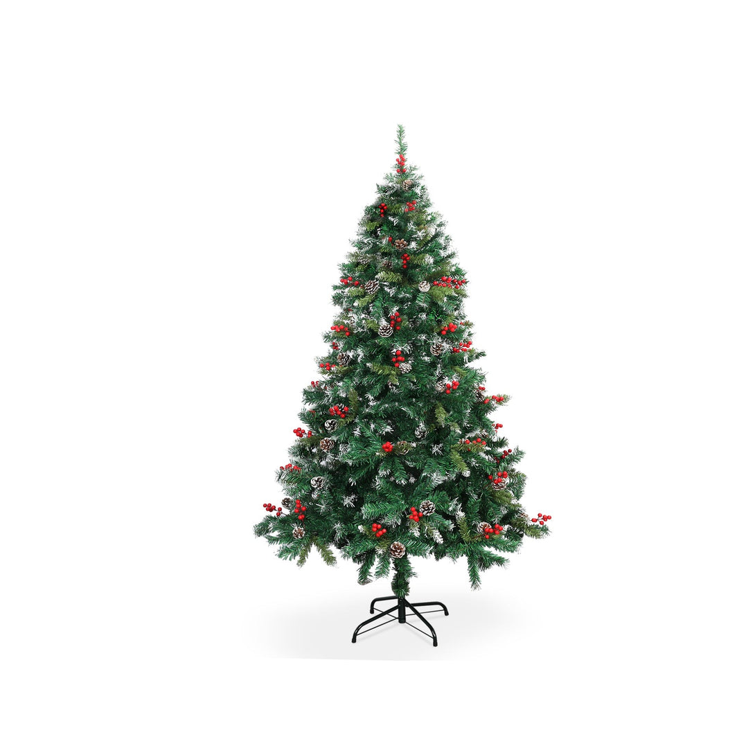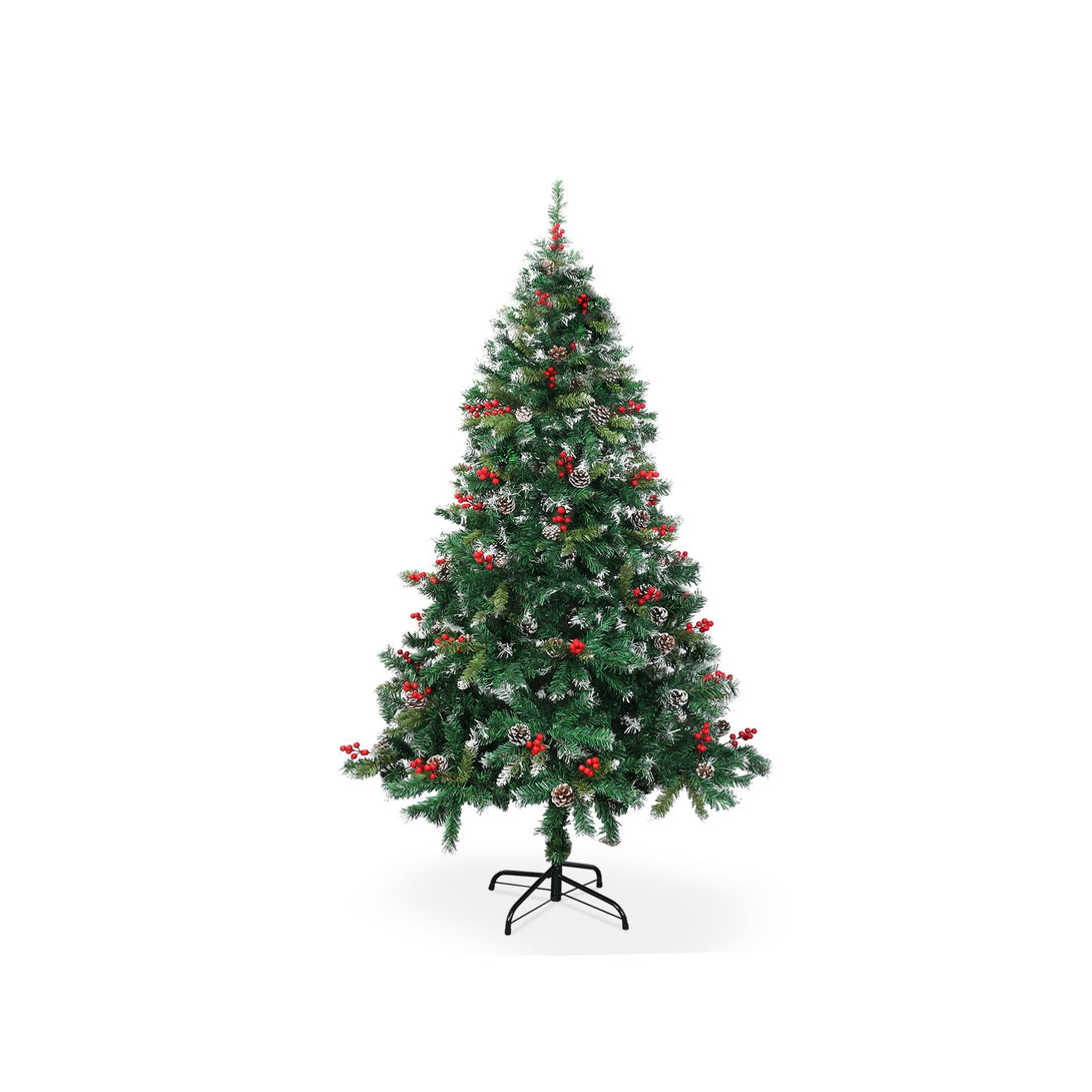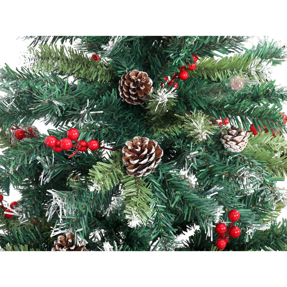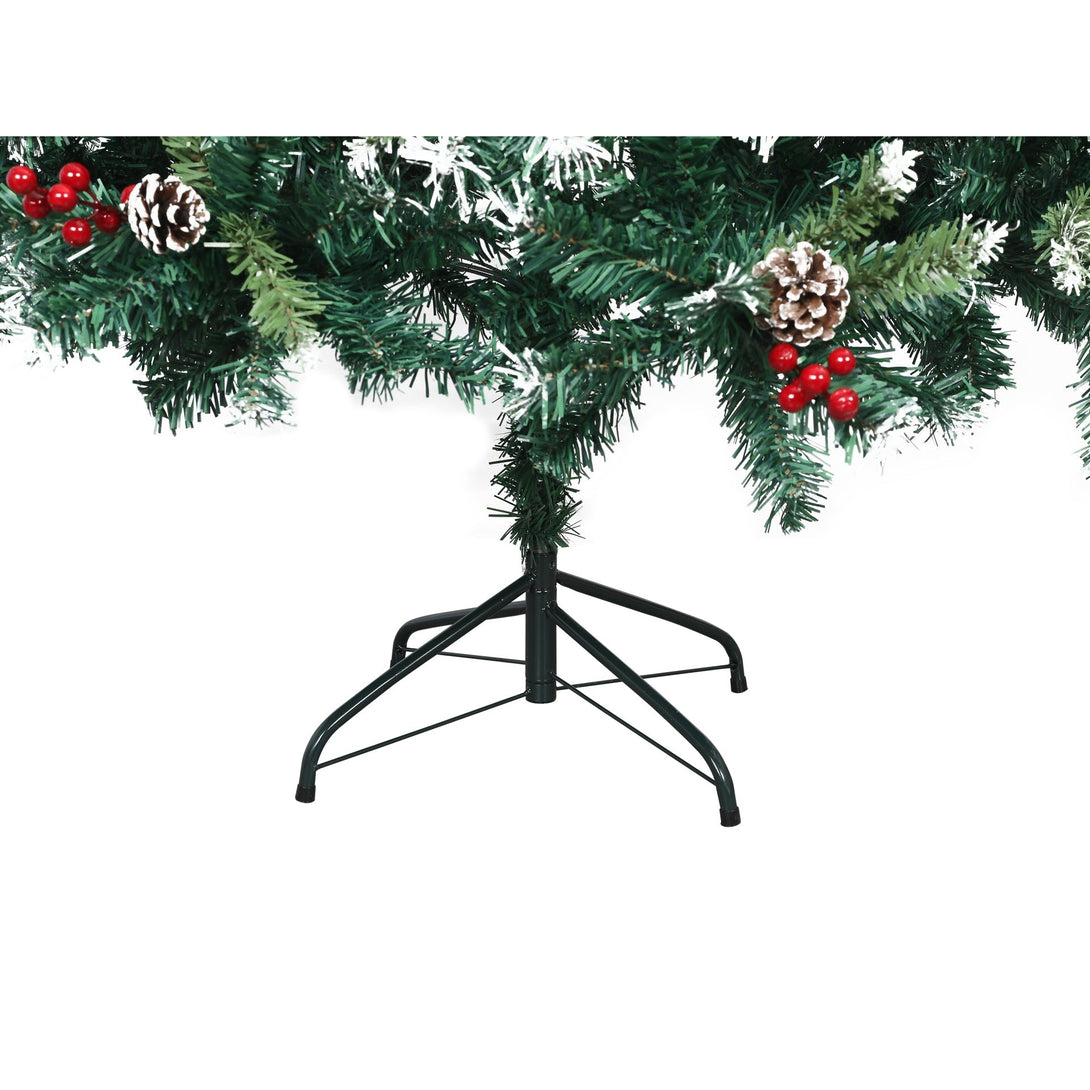 This beautiful tree comes adorned with charming red holly berries and pine cone decorations, adding a touch of traditional charm to your home. With its thick foliage and artificial snow-tipped branches, it creates a magical atmosphere that captures the spirit of the holiday season.
