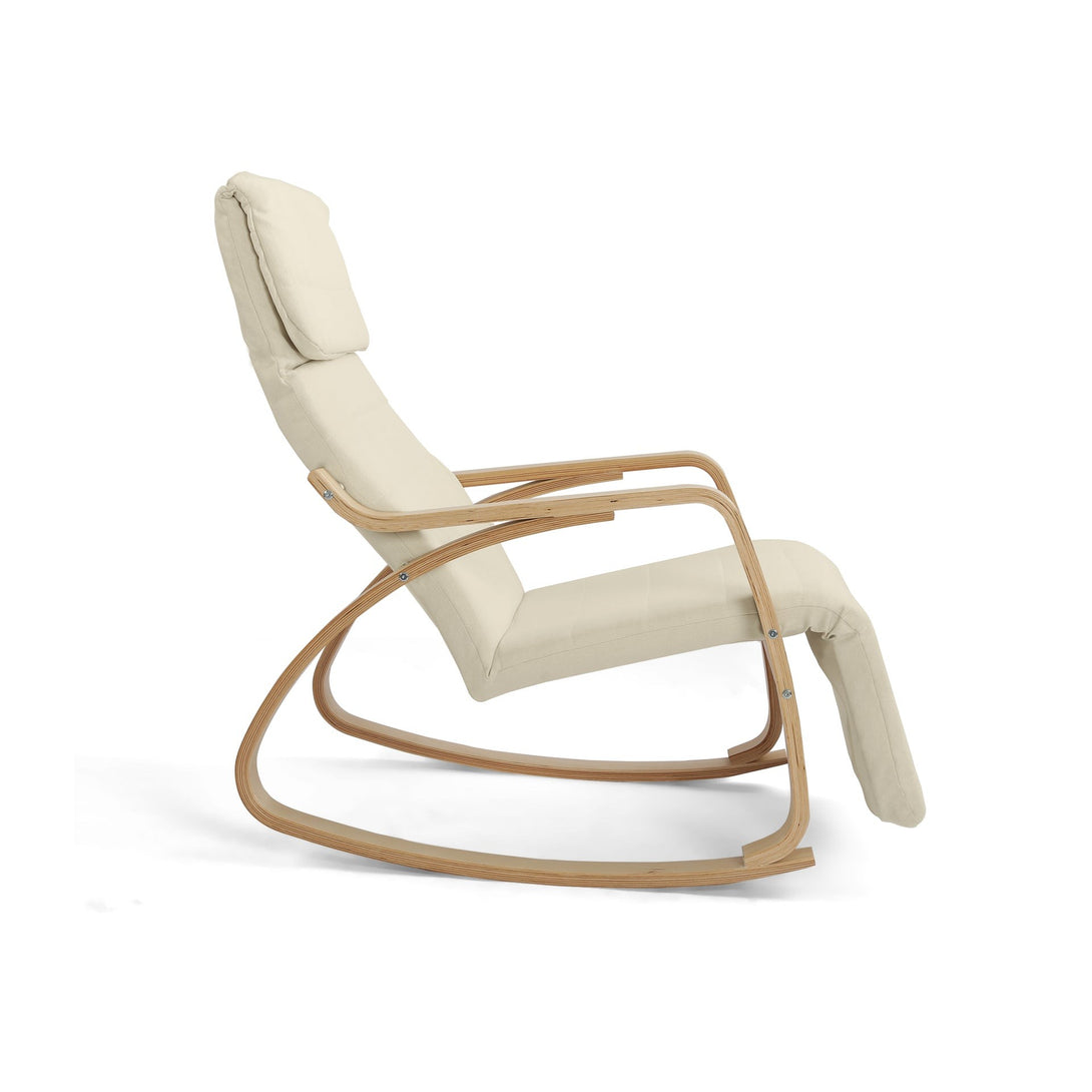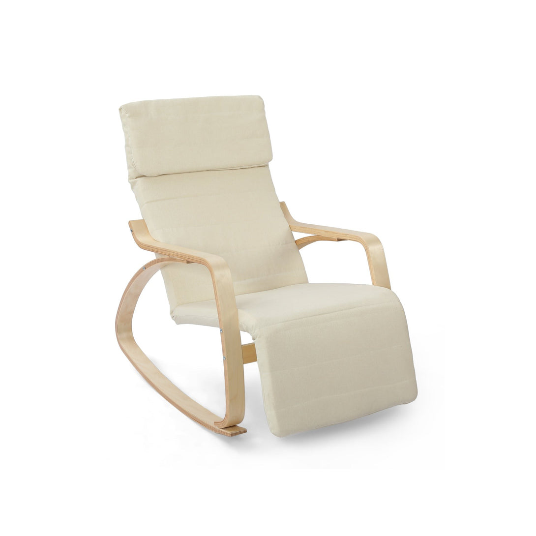 Draped in soft, gentle fabric, the Camila Rocking Chair boasts a durable construction that promises to be a lasting treasure in your home. Its cushions, filled with high-quality foam, offer a plush and supportive embrace, perfect for moments of relaxation. The adjustable footrest ensures you can always find your ideal position for ultimate comfort. The chair's bentwood rocker base and natural arc design facilitate a smooth rocking motion, making it an ideal haven for reading, or unwinding after a long day. Additionally, the convenience of a removable and washable zipper cover means maintaining it is simple.