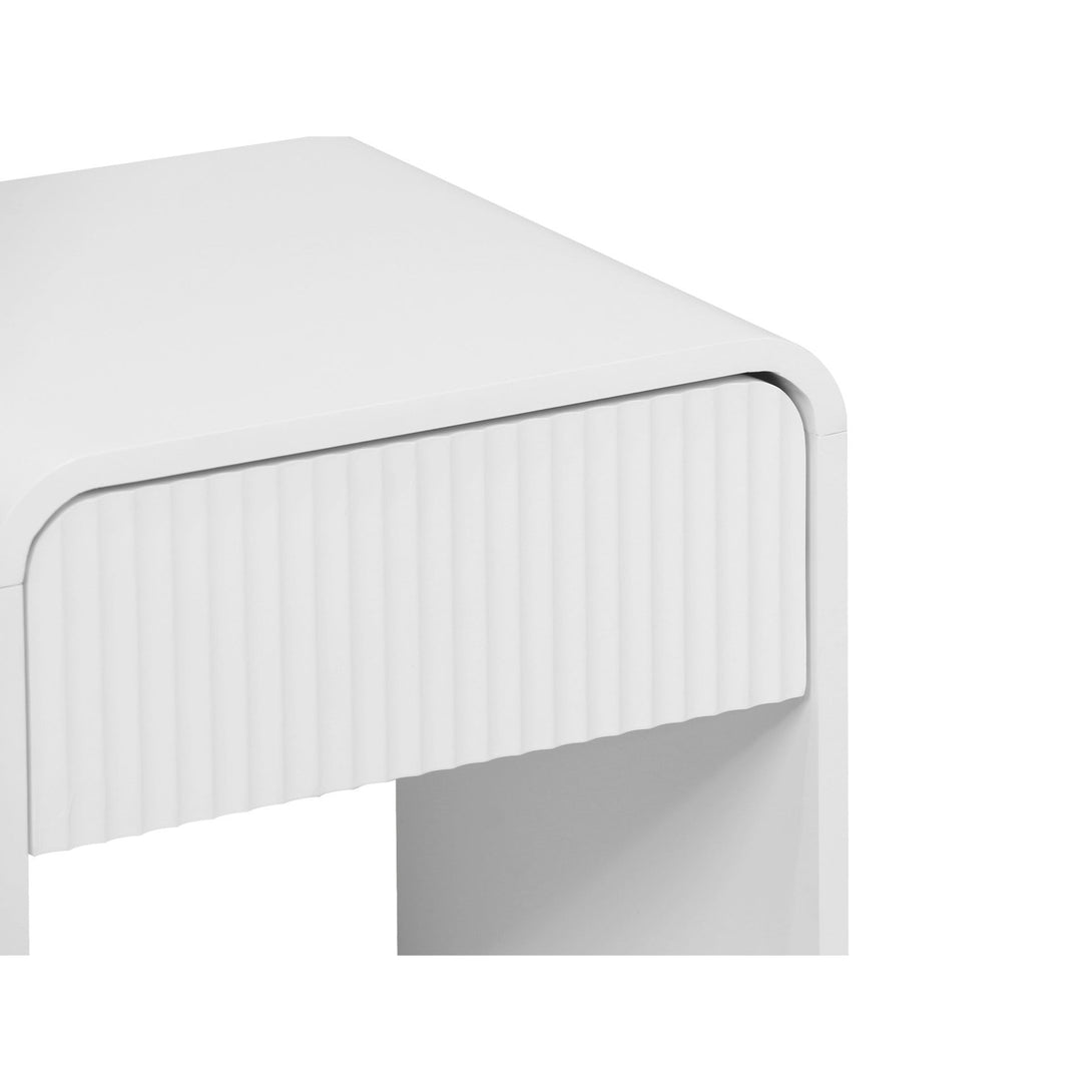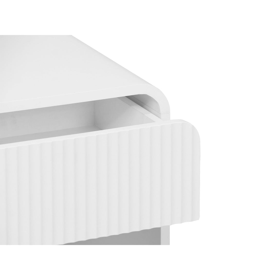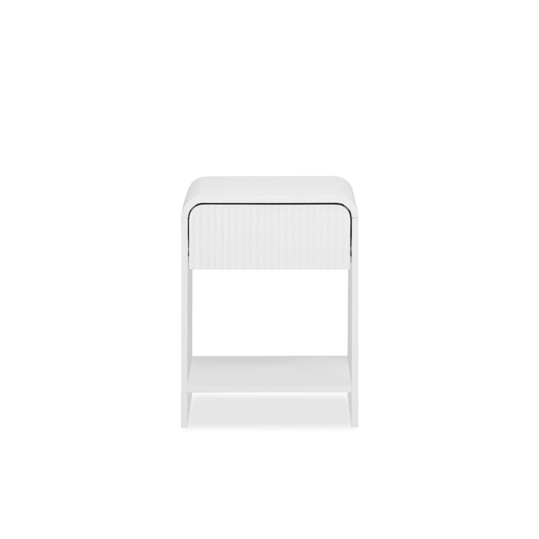 Elevate your bedroom with this Cannock Bedside Table, featuring a striking fluted drawer front and a smooth matte finish. Crafted from durable MDF board, it ensures long-term stability. The open shelf offers easy-access storage, while the handle-free drawer maintains a clean, seamless look.