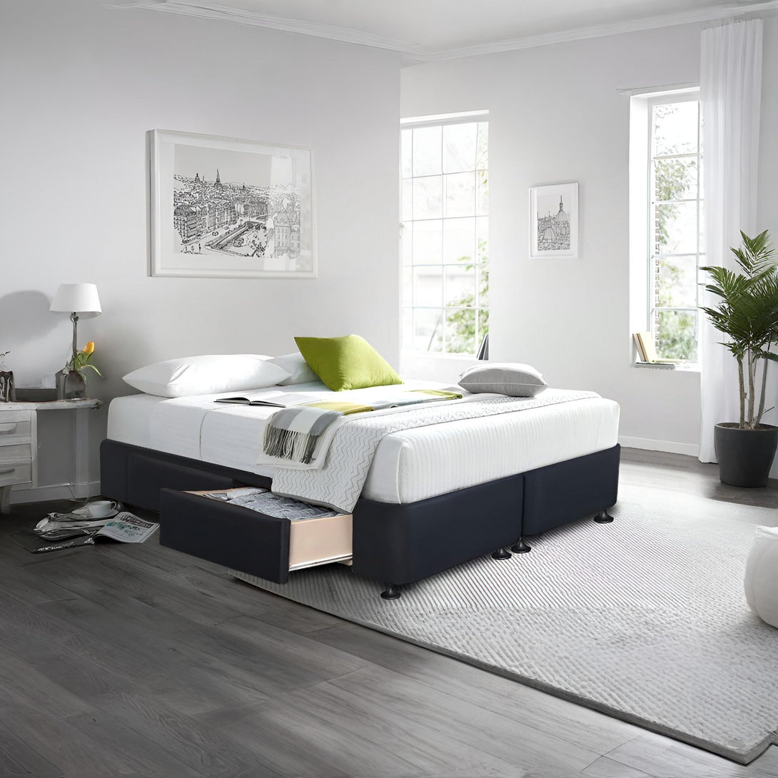 1 x CHARLES Fabric California King Split Bed Base 4 Drawers - BLACK