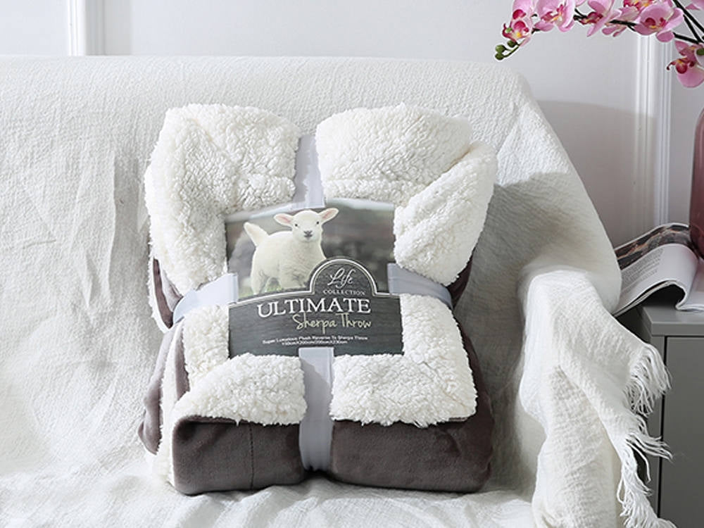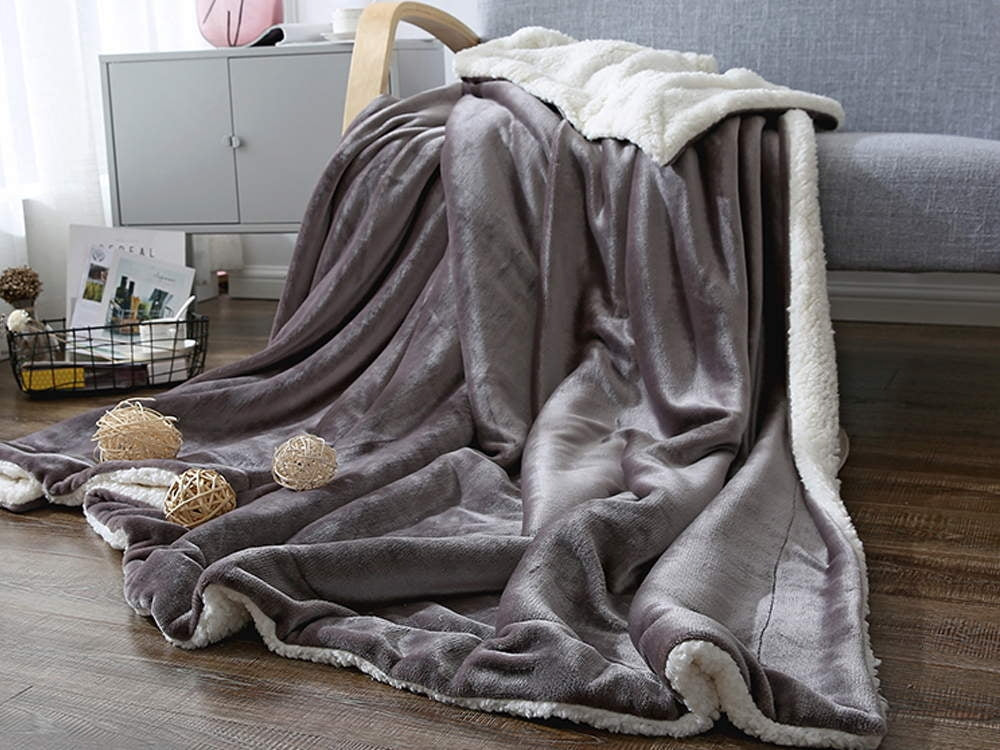 - Double Layer Warm Fleece Blanket Throw Blanket - MINERAL GREY