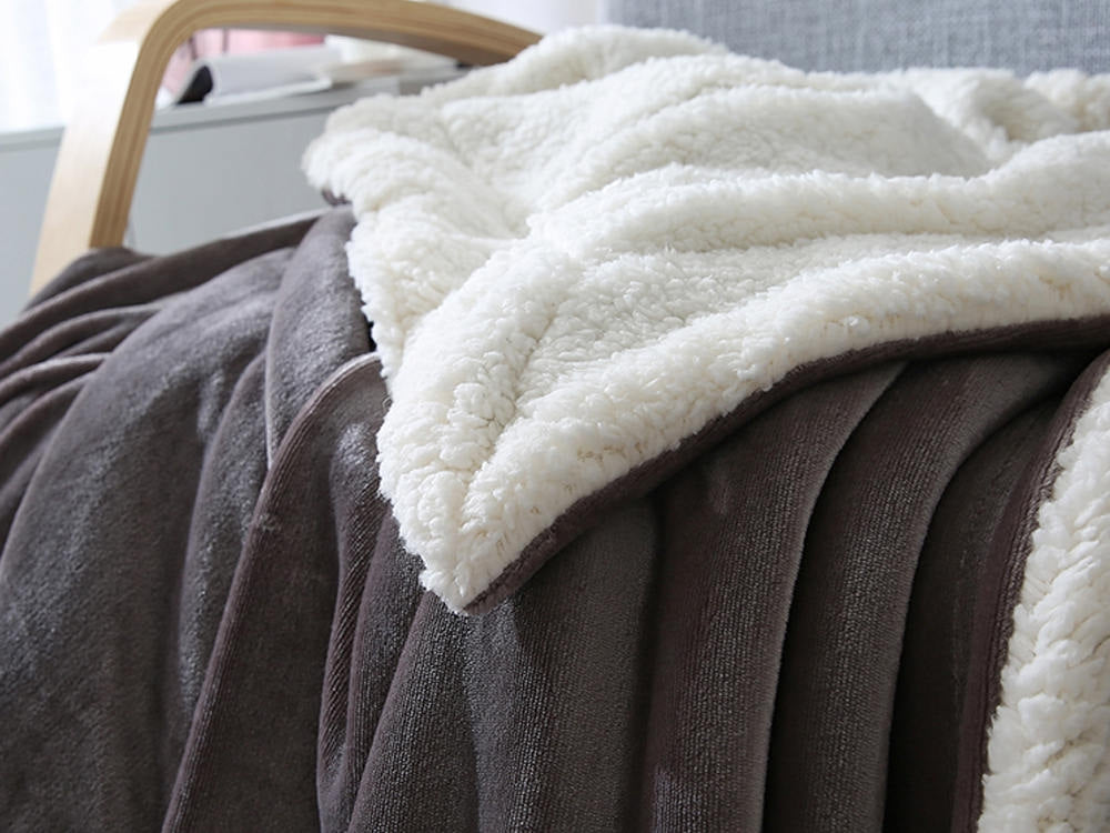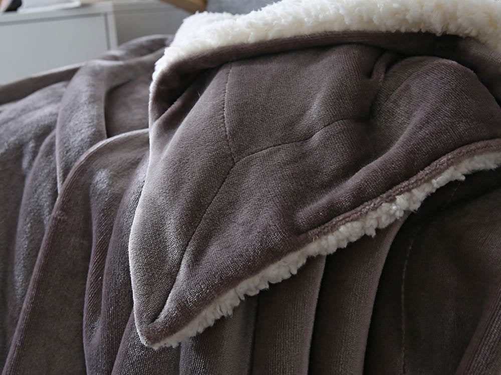 Double Layer Warm Fleece Blanket Throw Blanket - MINERAL GREY