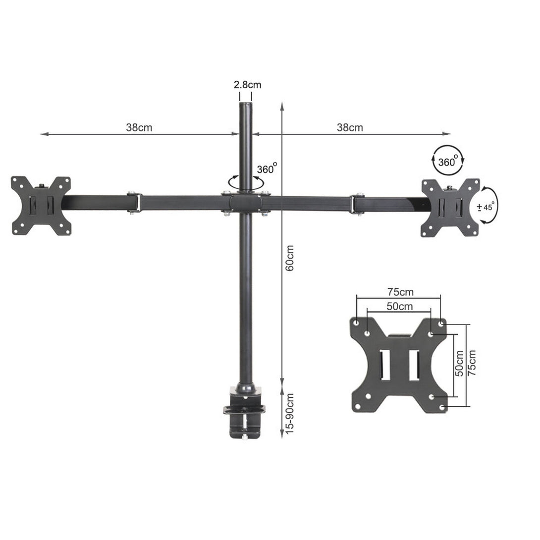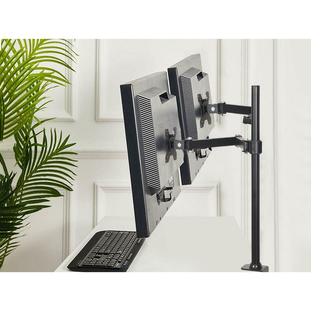 This Monitor Stand Bracket with dual arm is a classically designed monitor arm that offers the ergonomic benefits of a flat screen monitor arm but is much more affordable. Simply tighten the joint and you can adjust the viewing angle and exactly how stationary the monitor to be. Using the VESA mount, you can mount any monitor size of up to 30”. Feature with high-grade steel, this monitor arm can easily support a monitor up to 6.5 kg in each arm. It has an extension arm that can be swiveled from side to side. This monitor arm comes with a grommet mount and desk clamp options to make installation a lot easier.