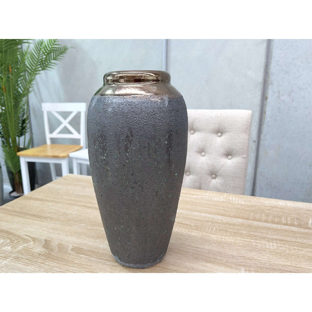 Enhance your decor with our Elara Ceramic Vase in a sleek charcoal, medium in size for perfect placement anywhere. Crafted from premium ceramic, this vase's contemporary design and durable build make it ideal for showcasing various floral arrangements or as a standalone piece, adding sophistication to any space.