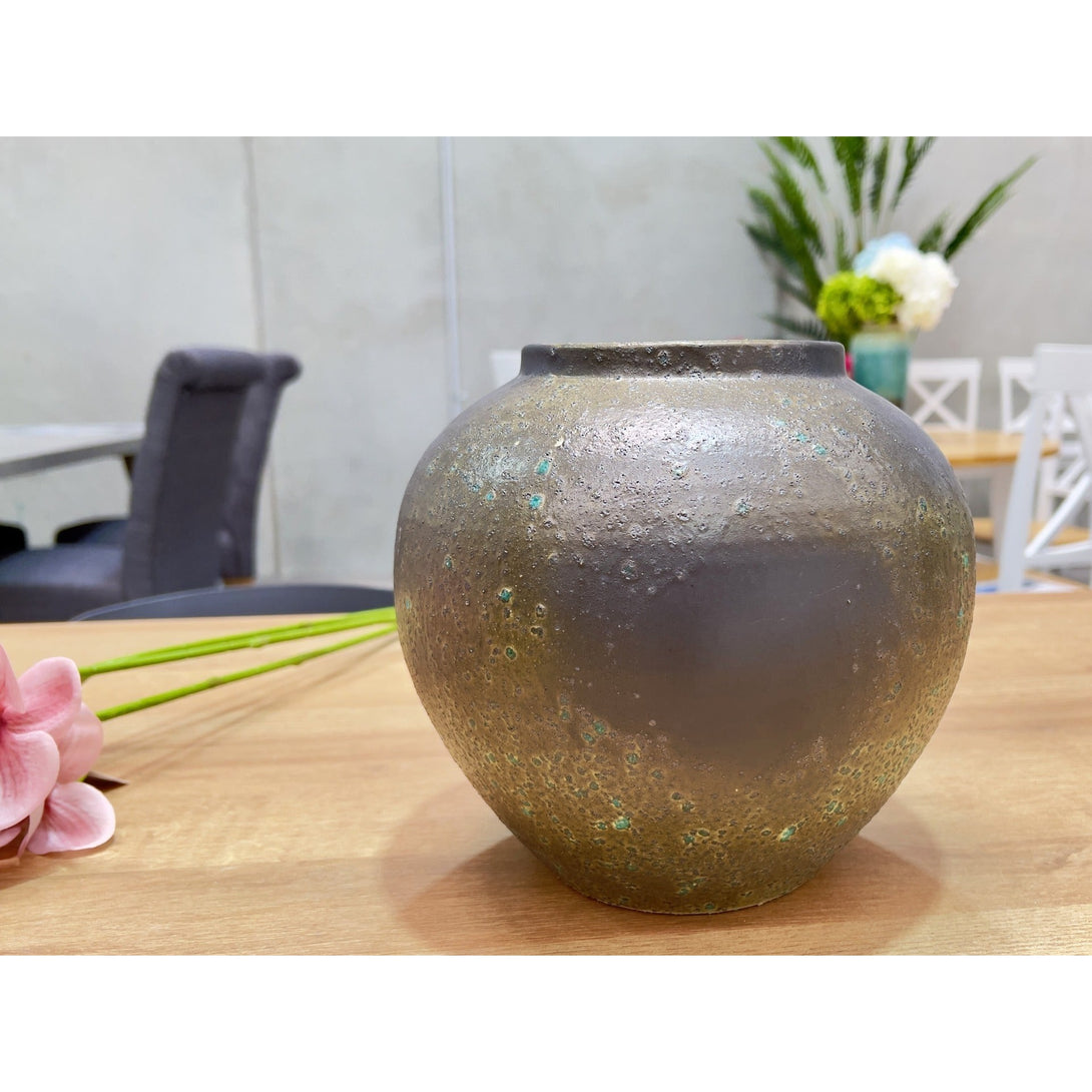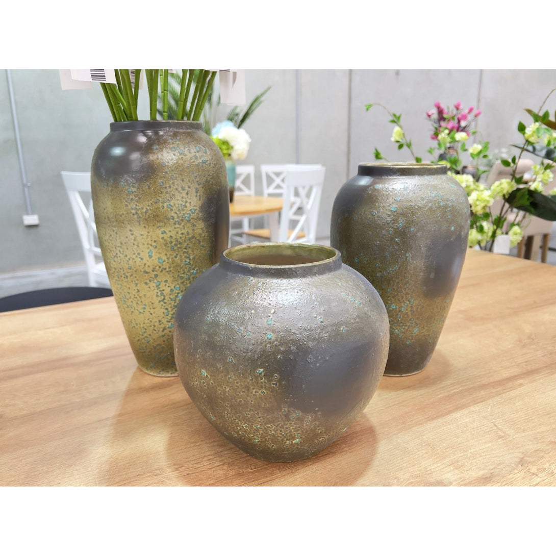 Elevate your interior with our Round Small-sized Ceramic Vase in a stylish blend of grey and green, a perfect fusion of modern aesthetics and natural charm, adding a contemporary touch to your decor.