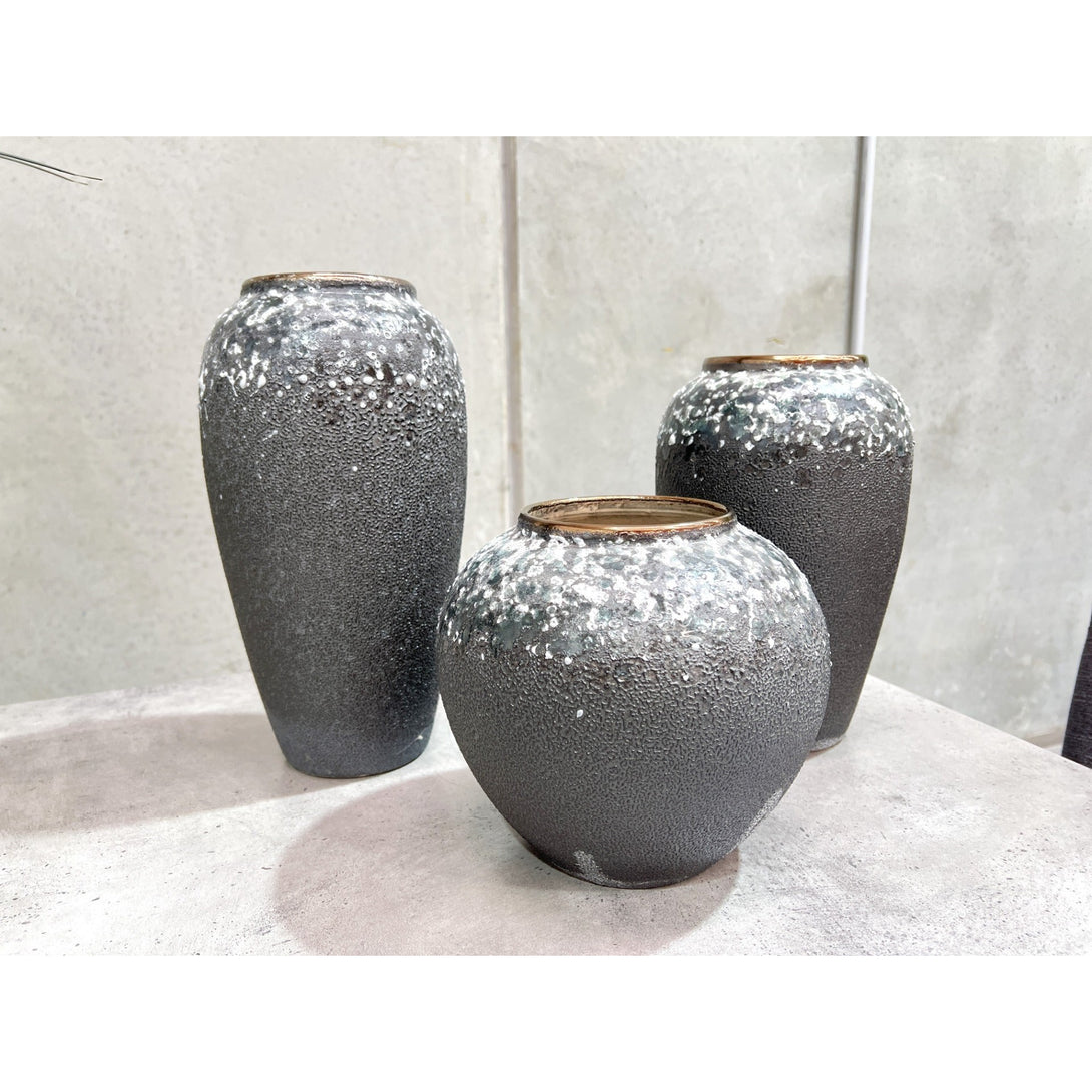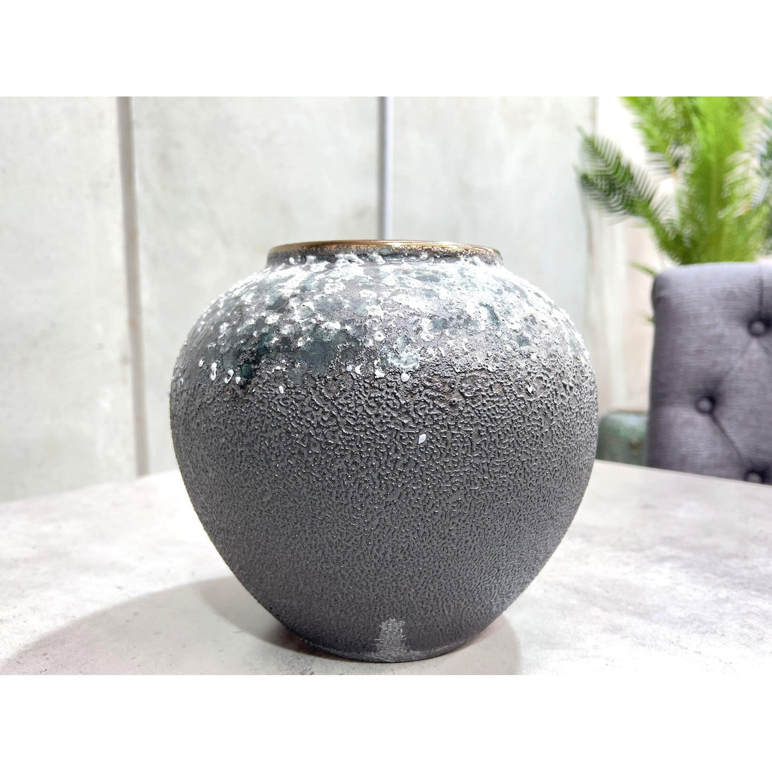 Elevate your interior with our Round Small-sized Ceramic Vase in a stylish blend of grey and green, a perfect fusion of modern aesthetics and natural charm, adding a contemporary touch to your decor.