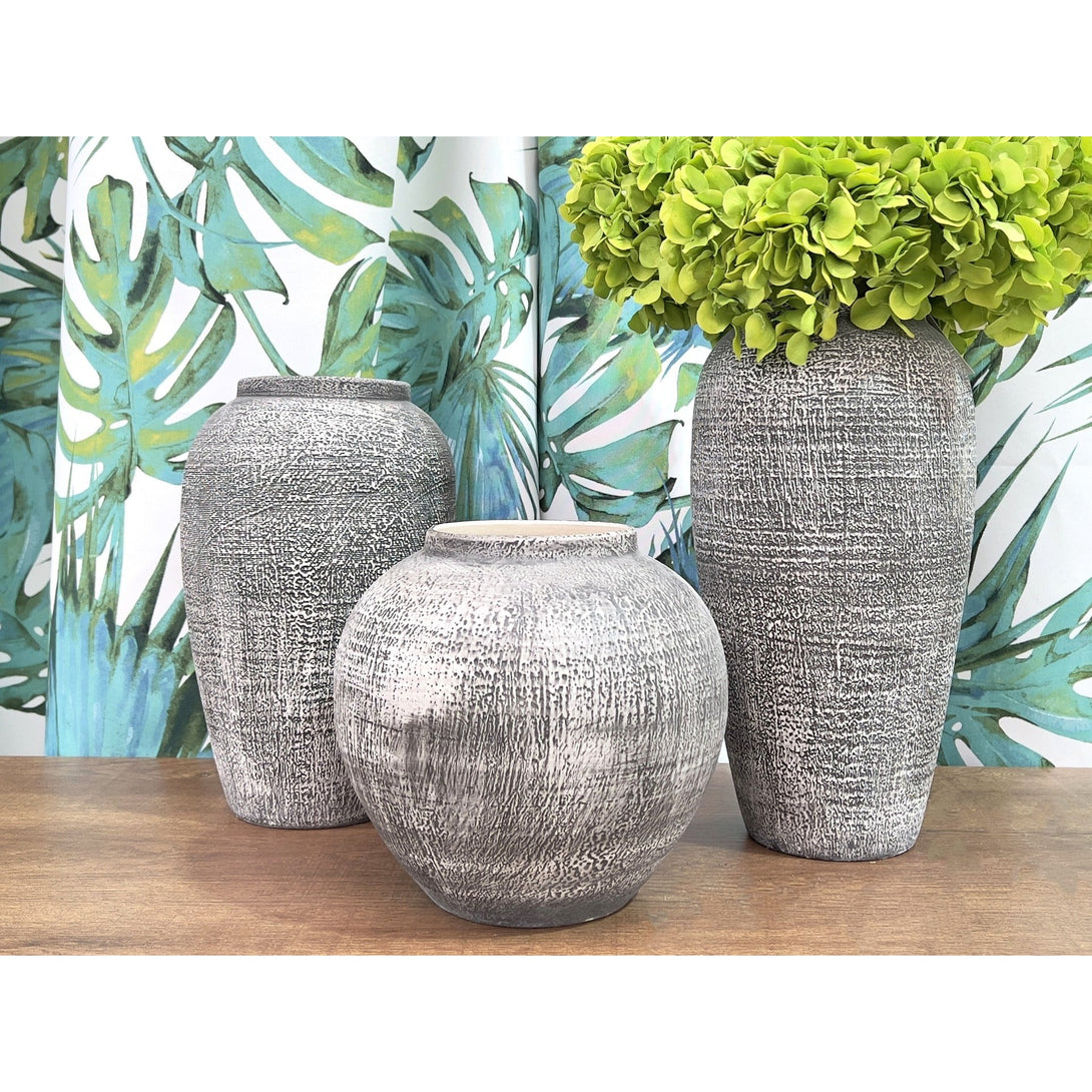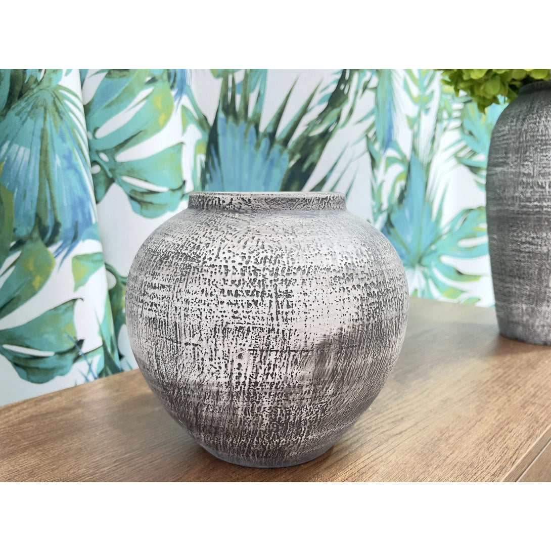 Elevate your interior with our round small-sized Grey Ceramic Vase, a sleek and versatile addition that effortlessly complements any décor style, adding a touch of understated elegance to your space.