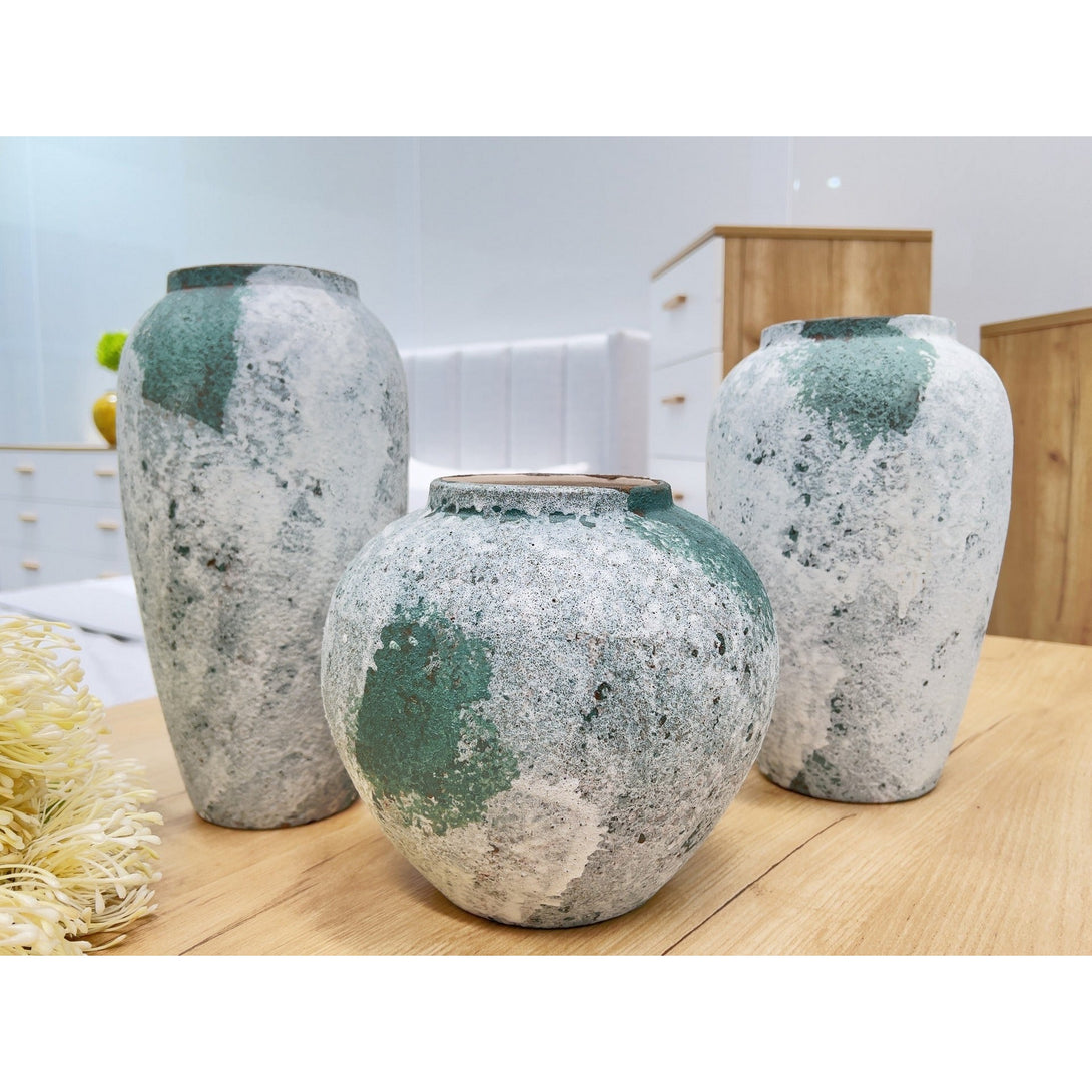 Introduce a touch of modern elegance to your space with our small-sized Ceramic Vase in a chic white and green color scheme. Expertly crafted from high-quality ceramic, this vase showcases a sophisticated design that complements any contemporary setting. Ideal for displaying fresh flowers or as a standalone piece, its versatile size and captivating color combination make it an eye-catching addition to any room. Designed with a sturdy base, it offers both stability and style, ensuring it's not just a decorative item but also a practical choice for your home or office decor. Add a modern twist to your interior with this beautifully designed ceramic vase, a perfect blend of form and function.