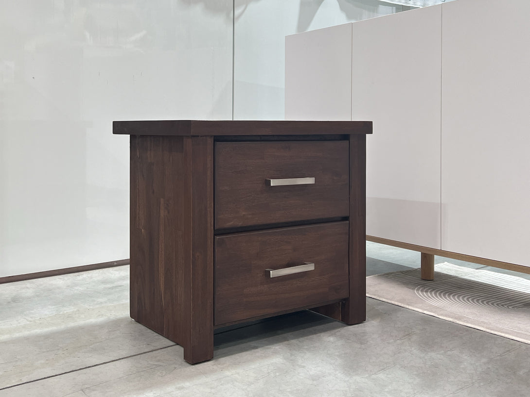This Hensley Solid Acacia Wood Bedside Table is part of our Hensley Range. Crafted with precision and care, the Hensley Bedside Table is made from high-quality solid wood, guaranteeing not only beauty but also exceptional durability. The metal handles not only provide a touch of texture and contrast but also make it easy to access the table's contents. Its distinctive natural wood grain finish beautifully showcases the inherent elegance of the wood. With two spacious drawers, this bedside table offers ample storage space for your nighttime essentials. The smoothly sliding drawers ensure that you can access your items with ease, making your nightly routine more convenient.