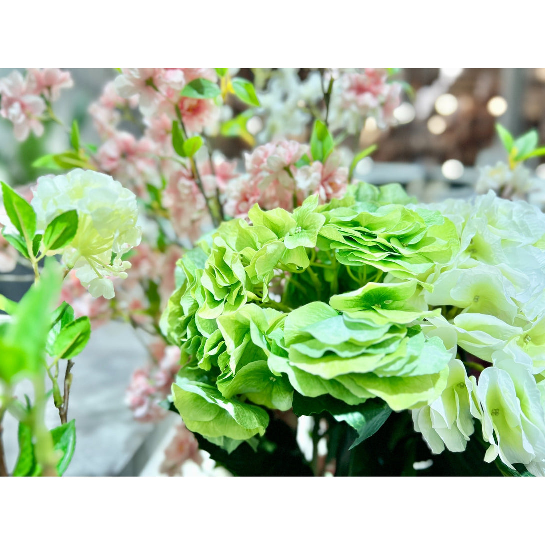 Discover the beauty of our Hydrangea Spray, boasting a generous 100cm height. Each delicate soft green bloom is intricately crafted to mimic the authentic touch and appearance of real hydrangeas. Perfect for those seeking effortless elegance in their decor, this faux hydrangea promises lasting charm without the upkeep. A decor essential for those who value authenticity and sustainability.