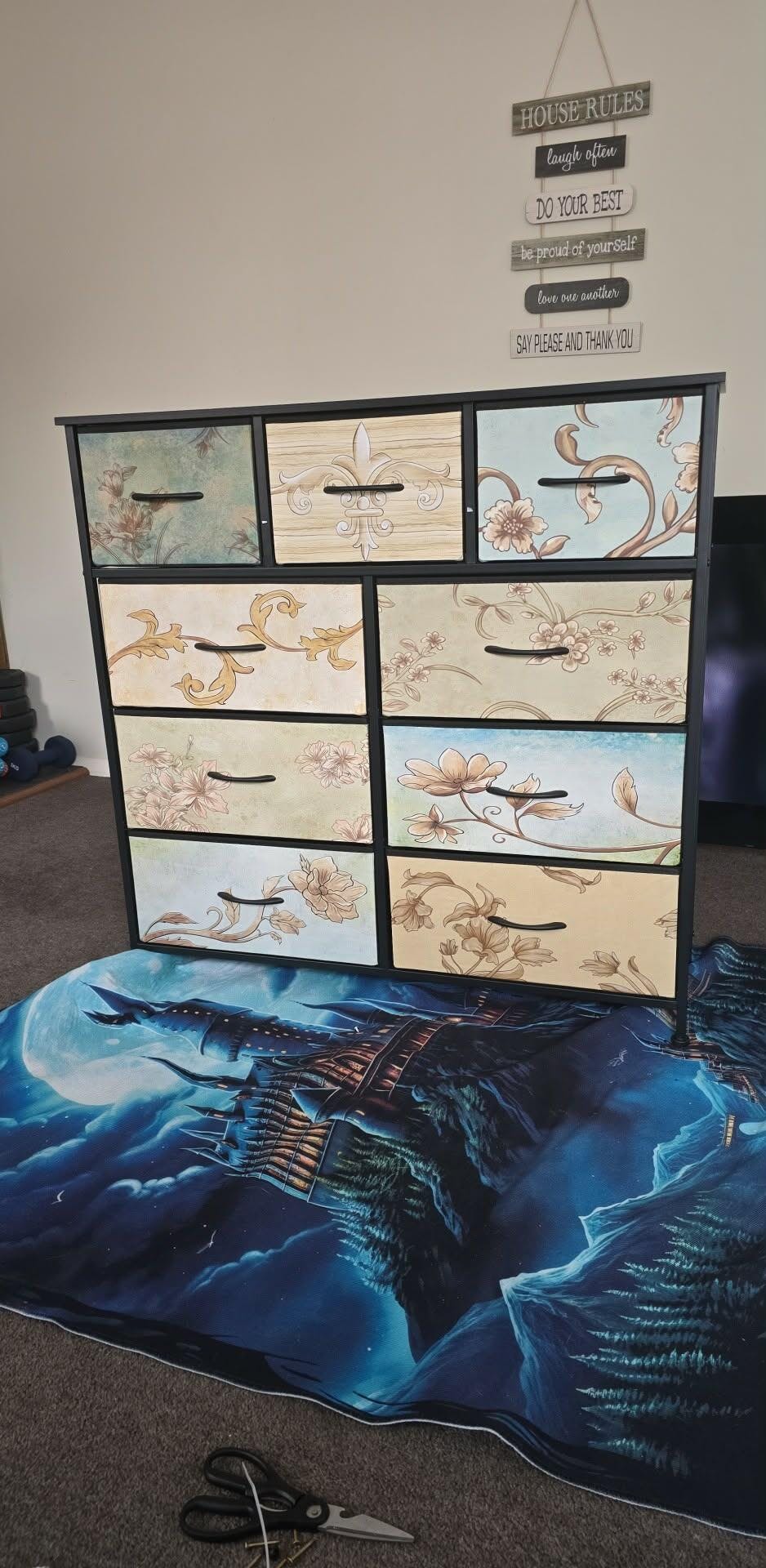 The overall simple black finish and handles highlight the visual spaciousness of the space, making this storage cabinet even more unique and charming. The storage cabinet combines high-quality MDF board with a durable metal frame and V-shaped back rod, promising durability and longevity. The wood board surface, coated for effortless maintenance, guarantees an exquisite appearance. An outstanding feature is its 9 high-grade drawers with handles, offering endless organisational possibilities and protect your privacy as well. The storage cabinet top is perfect for placing vases, photos, mirrors, and frequently used items. Additionally, It can also serve as a TV stand, providing versatile placement options for your room.