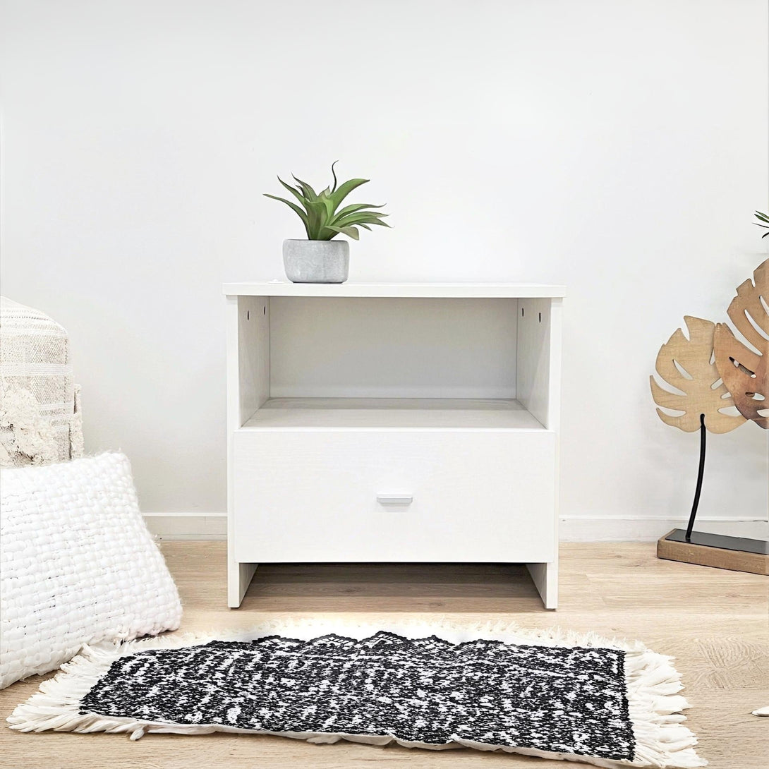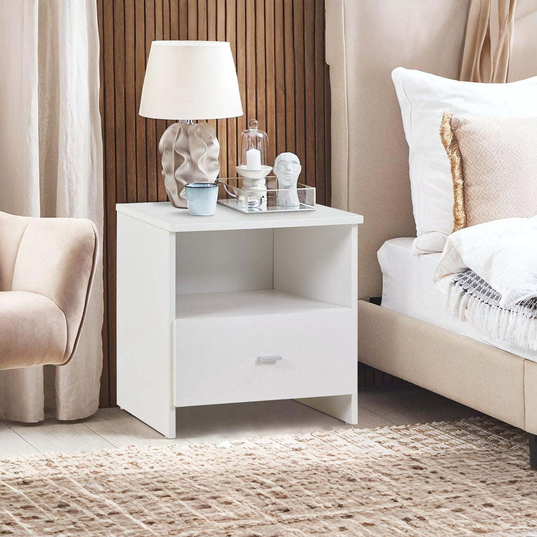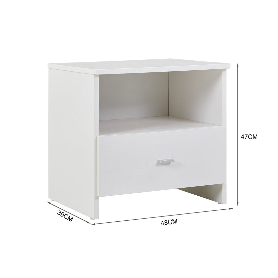 Package Contents | 1 x Makalu Wooden Bedside Table Nightstand with 1 Drawer - White |