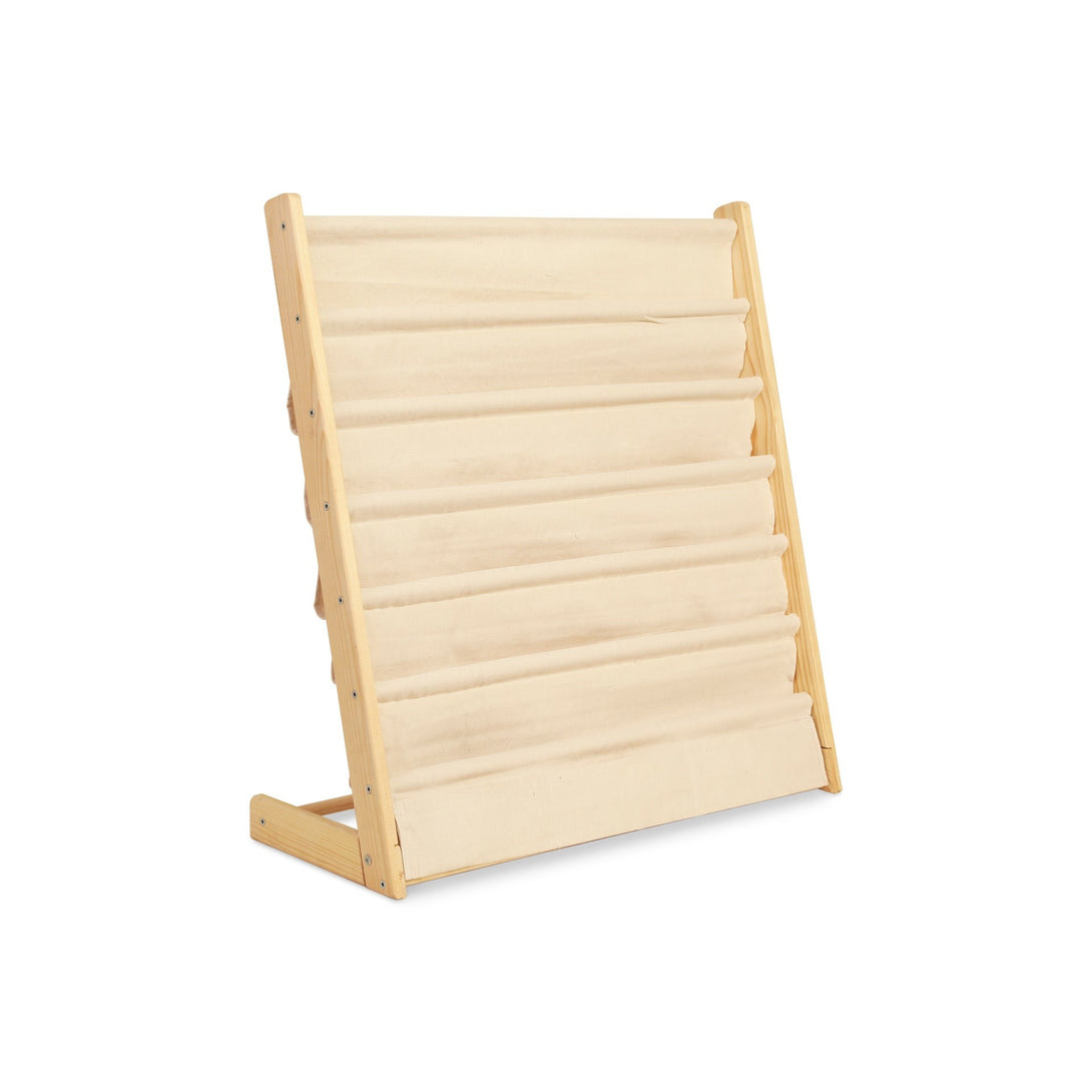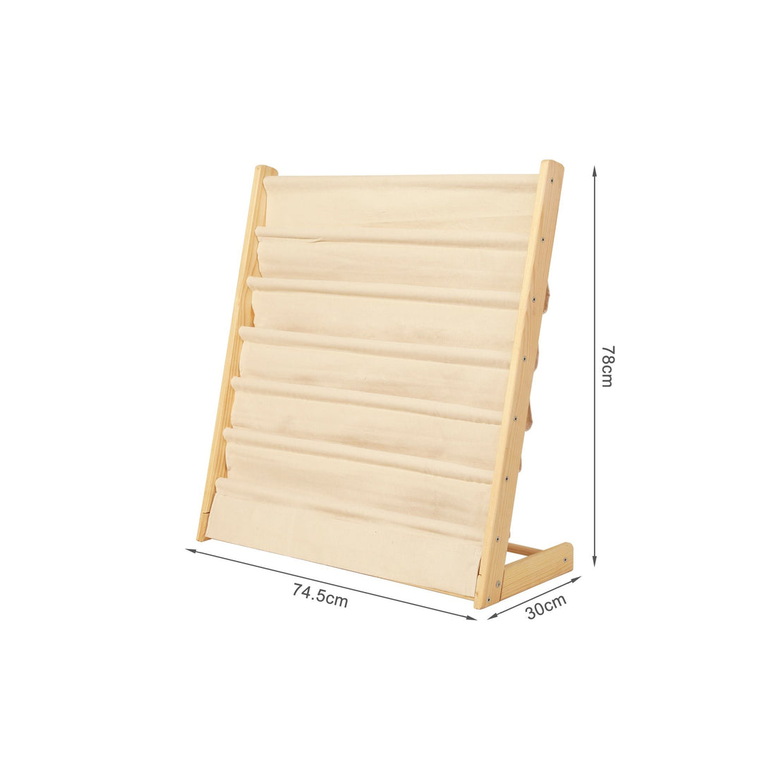 This space-saving kids bookcase has a floor-to-floor design that makes it easy for kids to store and retrieve books; while the fabric pockets display book covers for easy recognition by your child. The height of this bookcase keeps books at your kid’s level that help your kids grab their favourite books safety and train their hands-on ability. Made of sturdy and durable cloth and wood, this kids bookcase can hold heavy books without tearing; come with 6 tier to store enough books or magazines and keep your house neat and orderly; while the widen design of this bookcase allows you to put more books on it. The fabric and wood tone make their room in eye-catching style and infuse a little fun and vitality into your home.