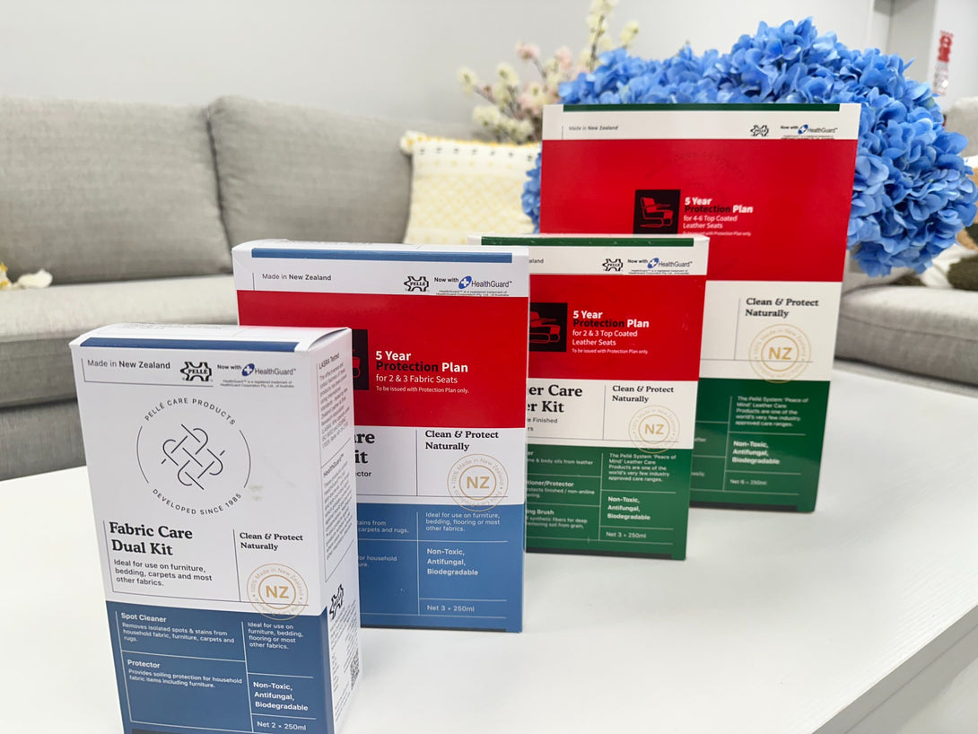 - Leather suites receive a Pelle leather care kit containing the Pelle leather cleaner and the leather conditioner & protector.