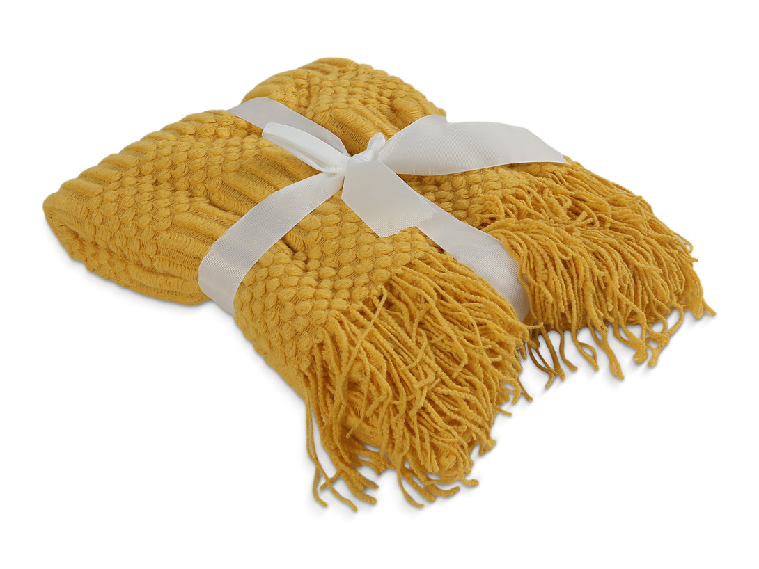 Sized at 130x170cm, this blanket is a perfect blend of functionality and style. Crafted from robust polyester, it ensures durability while providing a soft touch. It's unique design and lively yellow colour make it a standout addition to any room. Whether draped over a chair, used as an extra layer on chilly nights, or as a vibrant decorative piece, this throw is versatile and easy to care for everyday convenience.