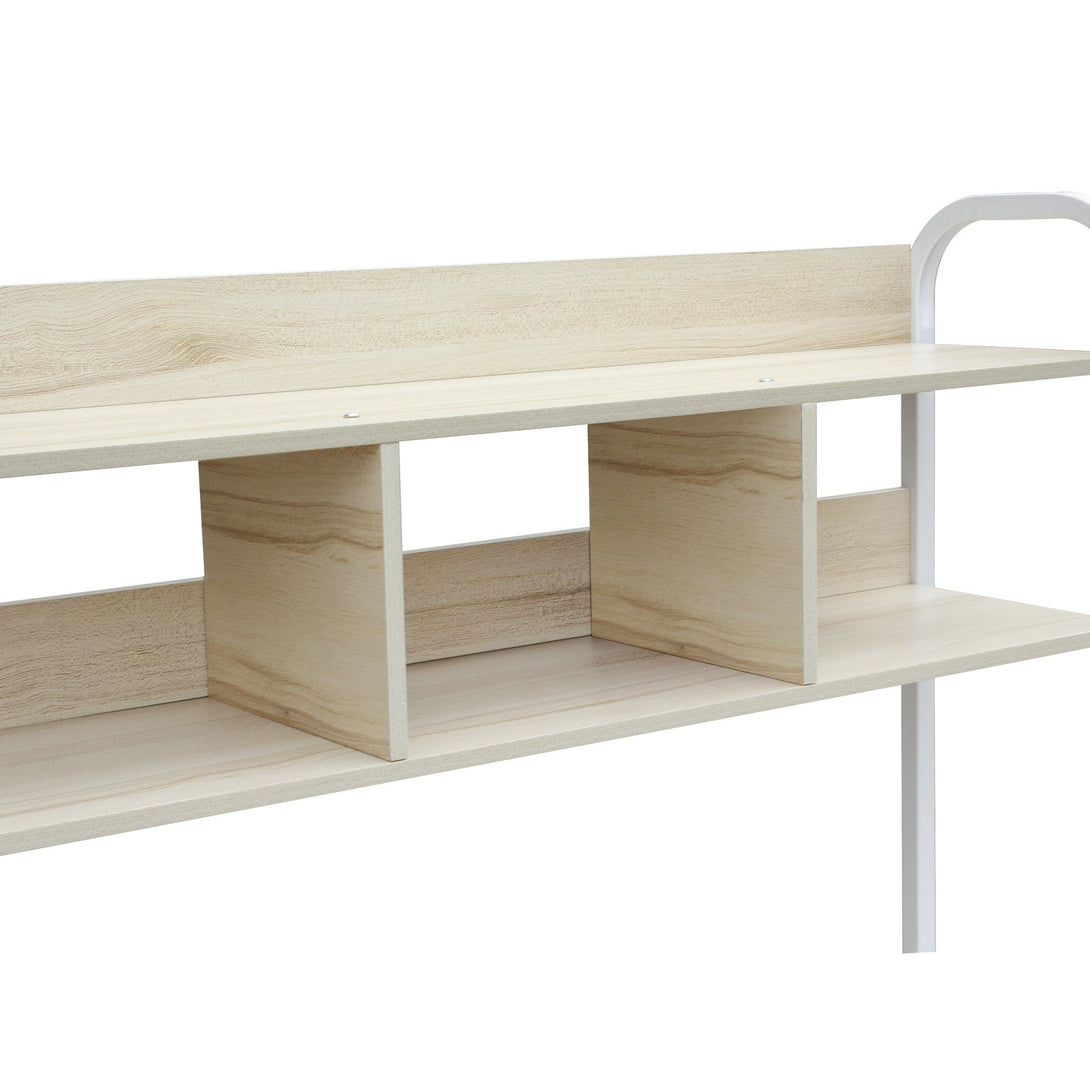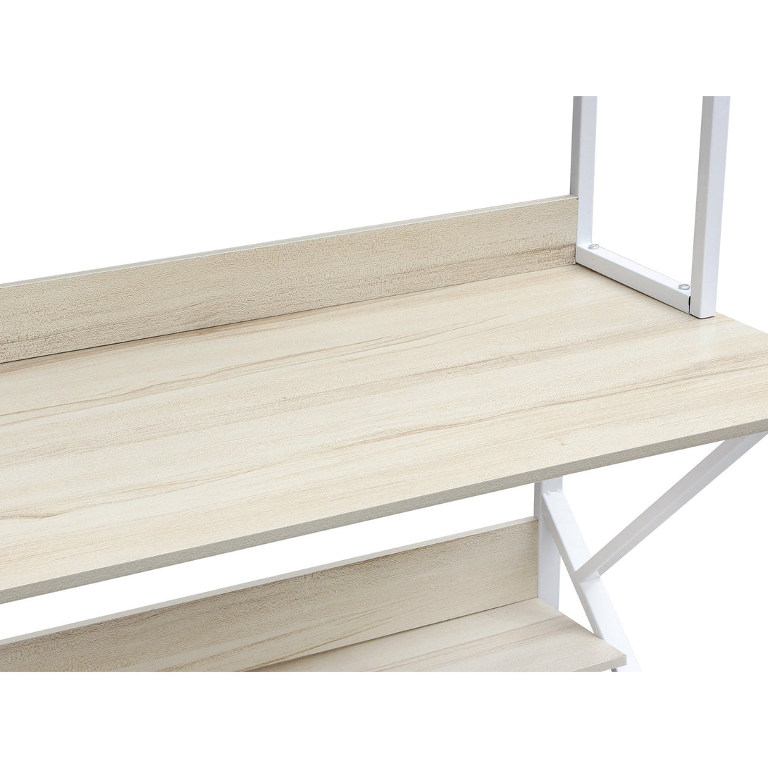 The desk consists of durable MDF materials, complemented well with a strong white metal frame, giving it stability and durability. The white and maple wood look melamine finish provide a natural and warm look which complements various interior styles.