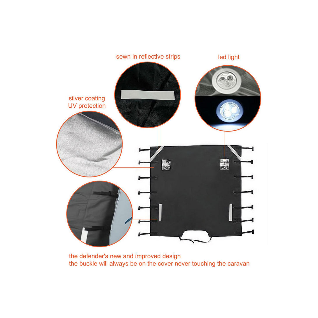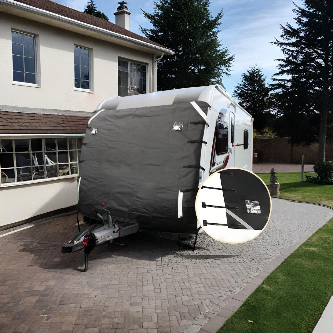 This High quality caravan cover gives superior all year round protection and gives peace of mind in all seasons. This caravan covers 4 reflective strips to give better visibility on the road when travelling at night. And the fabric is breathable to allow moisture to escape and UV stabilised to give long life.