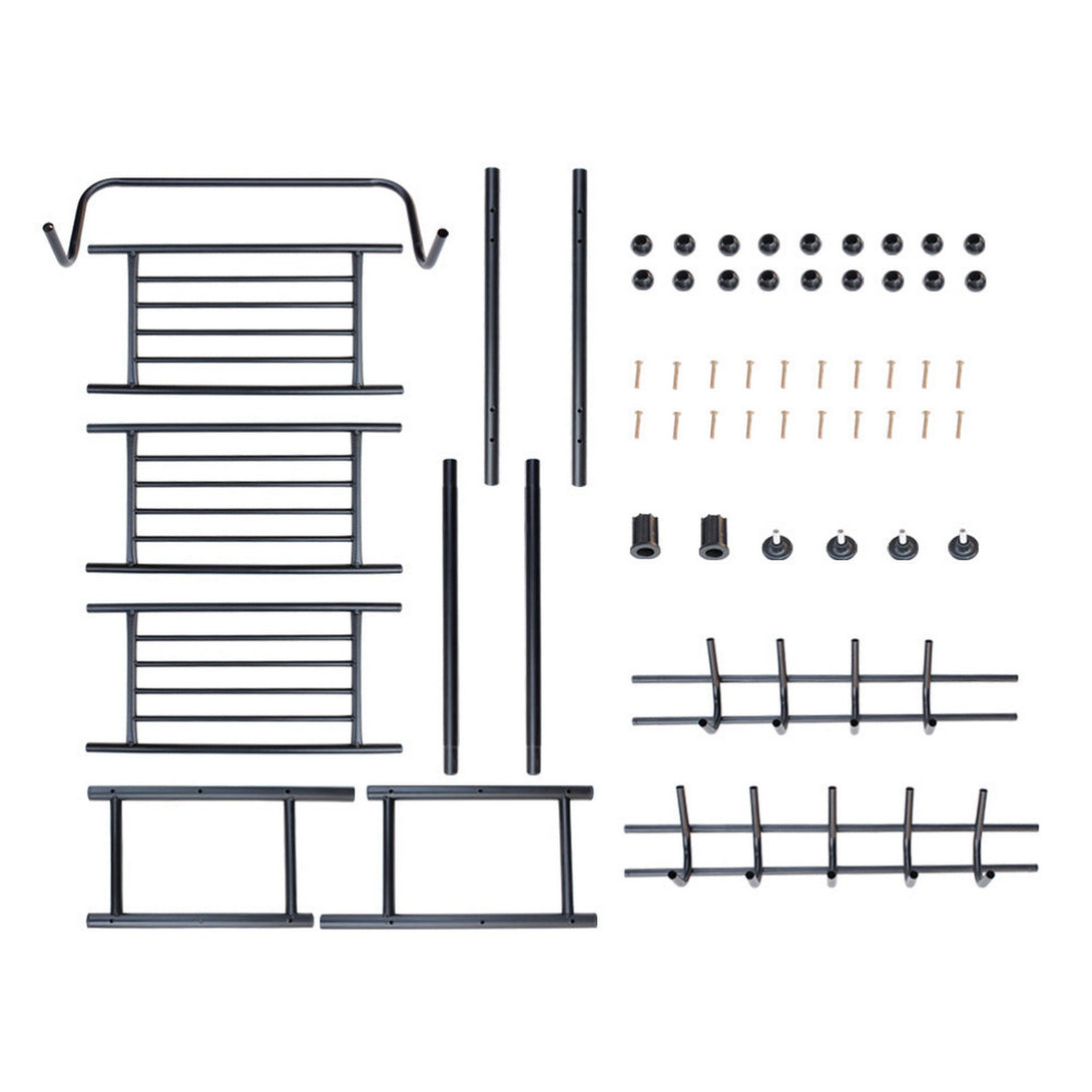 It can be easily placed by the entryway, in your living room, bedroom, and dressing room. You can even put it in the bathroom to organize your bathroom products. It easily blends into most decors and is water- and rust-resistant because of its black powder-coated finish.