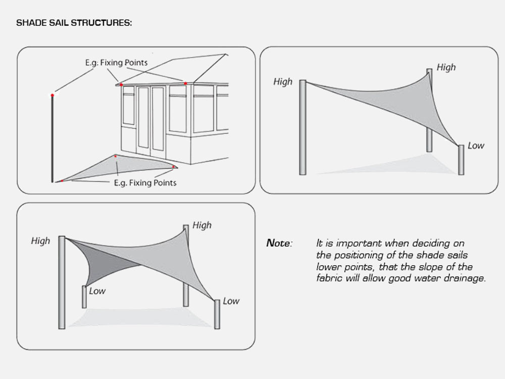 PLEASE NOTE: The material of this shade sail is porous due to the sail is a woven fabric meaning water will still fall through (the sail is tightly knitted so woven gaps are very small and minimal rain will filter through). To avoid heavy puddles building up in the middle of the sail, it is recommended that users install shade sails on a slight angle to allow heavy rain water run off the side