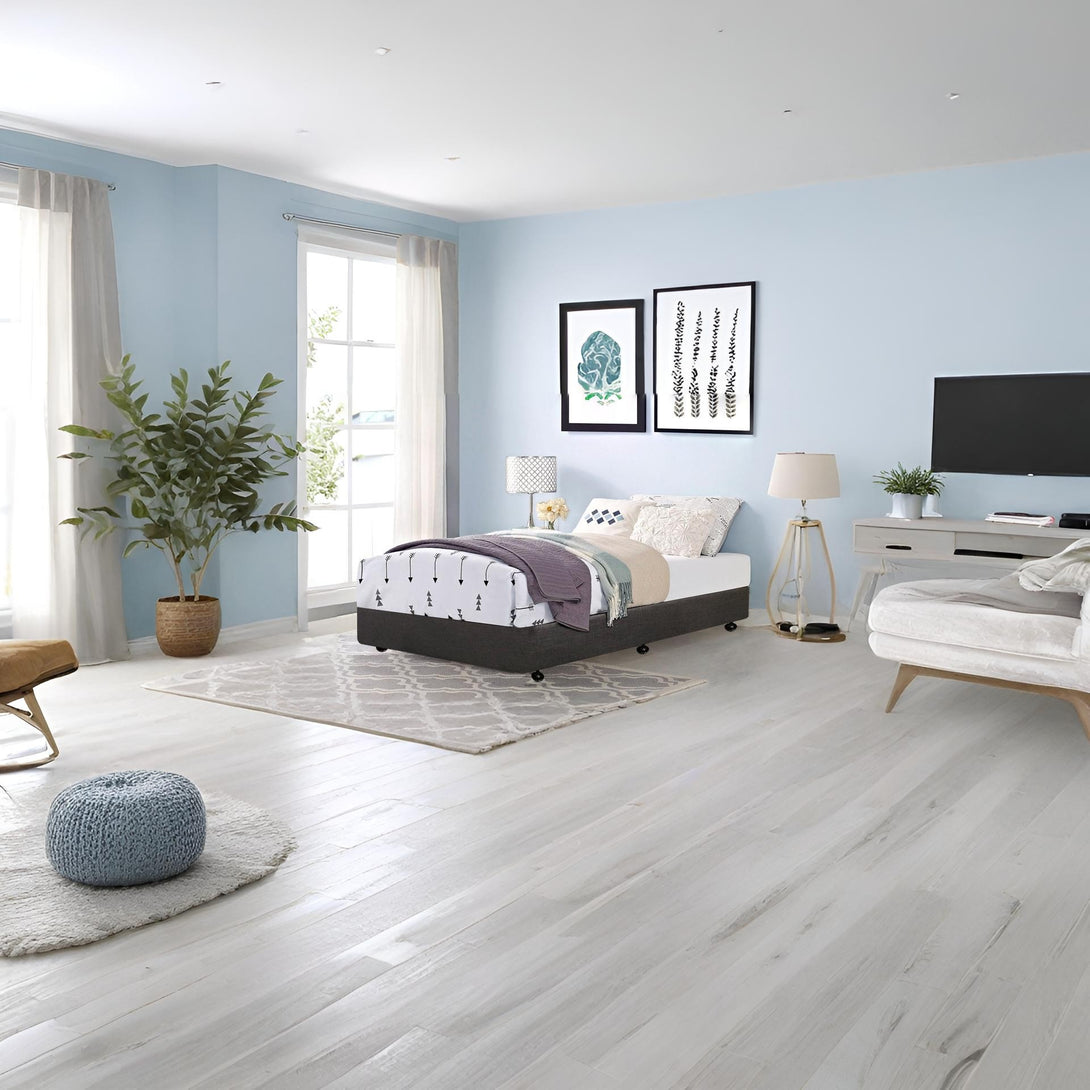 VINSON Fabric King Single Bed is the best alternative if you are not a fan of PU leather. Its high-quality fabric would bring warmth to your space, and will create a contemporary feel in your bedroom. This bed features wooden bed frame with sturdy legs and comes enveloped in polyester upholstery. It is completely NZ manufactured and meets the highest quality standards. With its nice and simple design, it makes a perfect combination with all sorts of headboard styles from simple to creative, it is your call!