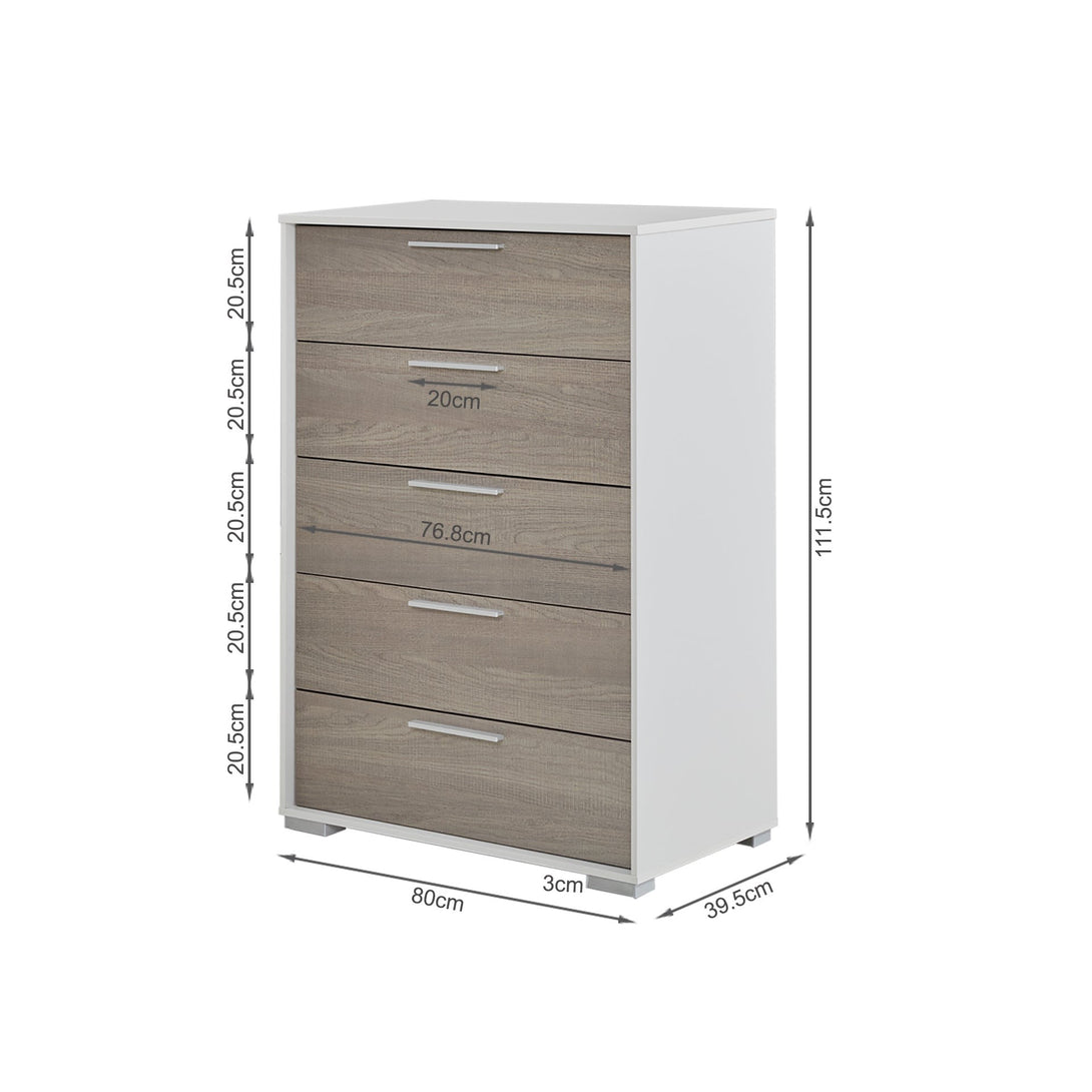 | Package Contents | 1 x WAIPOUA Wooden Tallboy 5 Drawers - GREY OAK |